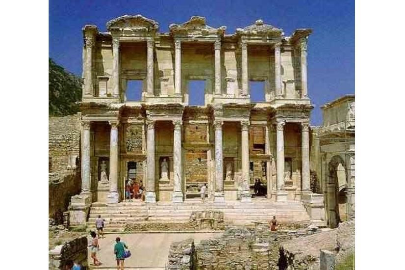 ローマ人によって紀元41年から117年の間に建設された大劇場は現在も25,000人の観客を集めて使用されている。アゴラ、オデオン座、メドゥーサの首が守るハドリアヌス神殿を見学した後、大理石の道を進み、印象的なケルスス図書館、聖パウロが2年間毎日議論し教鞭をとったティラノスを見学する。大理石の道、神殿、浴場、ギムナジウム、そして世界の七不思議のひとつであるディアナ神殿(アルテミス神殿)を見学。