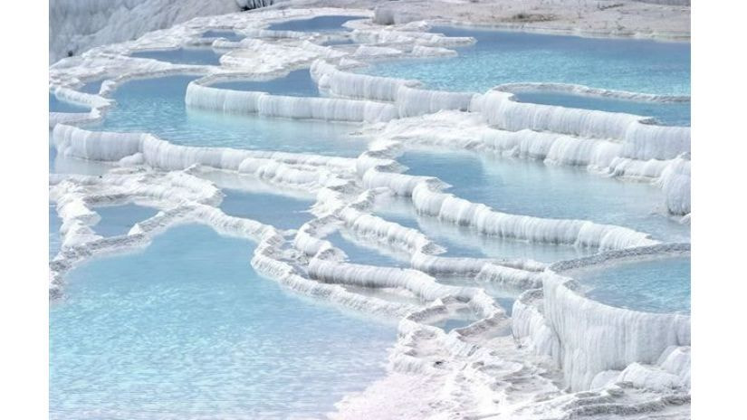 地元では綿の城と呼ばれ、カルシウムを豊富に含んだ温かいミネラルウォーターが崖の縁から流れ落ち、冷やされて堆積したものである。そのカルシウムが崖に天然の棚やプールを作り、トラバーチンと呼ばれている。紀元前190年頃にローマ人によって建設されたヒエラポリスの廃墟となった温泉街には、壮大に保存されたネクロポリス、メインストリートと門、温泉、ローマ劇場、博物館がある。